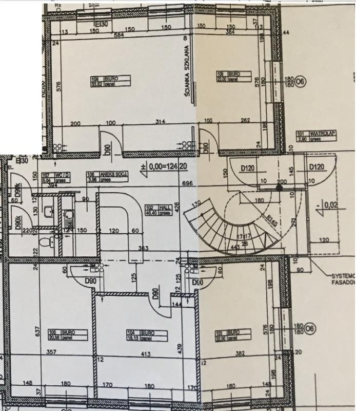 Pietro 1 - biura na części magazynowej połączone z biurami 1 pietra o powierzchni 118m2